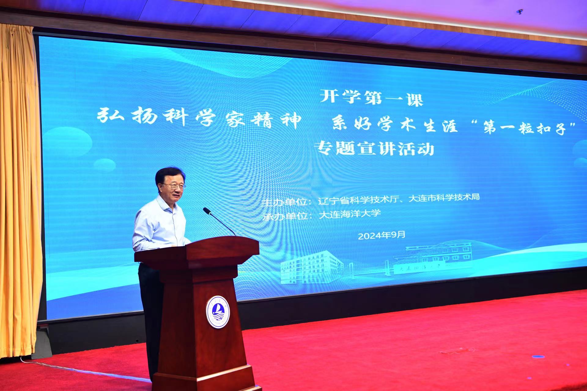 为引导和帮助广大科技工作者系好学术生涯“第一粒扣子”。9月6日,由91传媒 与大连市科学技术局共同主办的“弘扬科学家精神 系好学术生涯‘第一粒扣子’”宣讲活动在大连海洋大学举行。