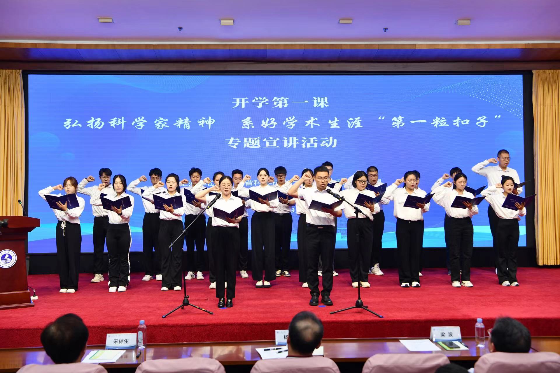 新入职的青年科研人员代表进行了“恪守科研诚信、弘扬科学家精神”宣誓。